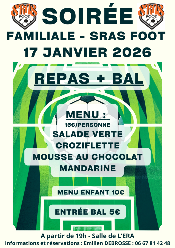 Soirée Familiale SRAS Foot le 17 janvier 2026.