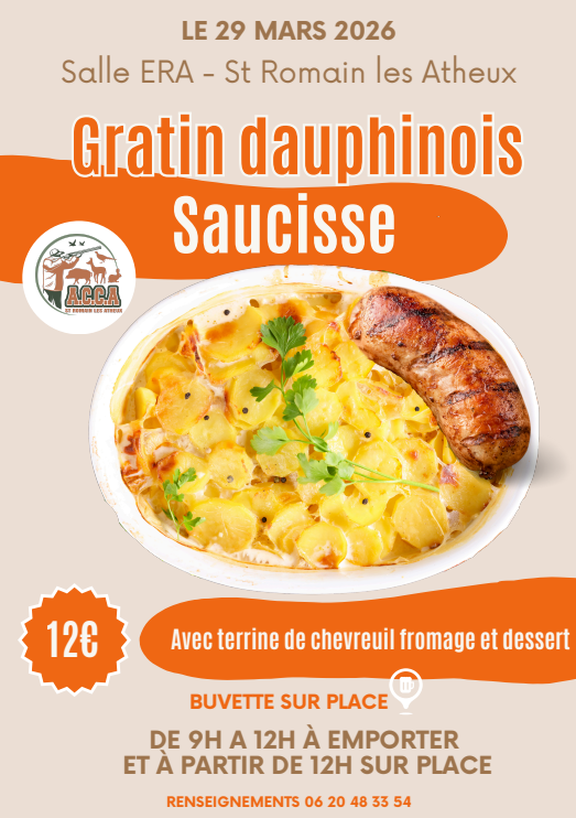 Matinée Gratin Dauphinois Saucisse 28 février 2026 28 février 2026 Organisé par ACCA St Romain les atheux